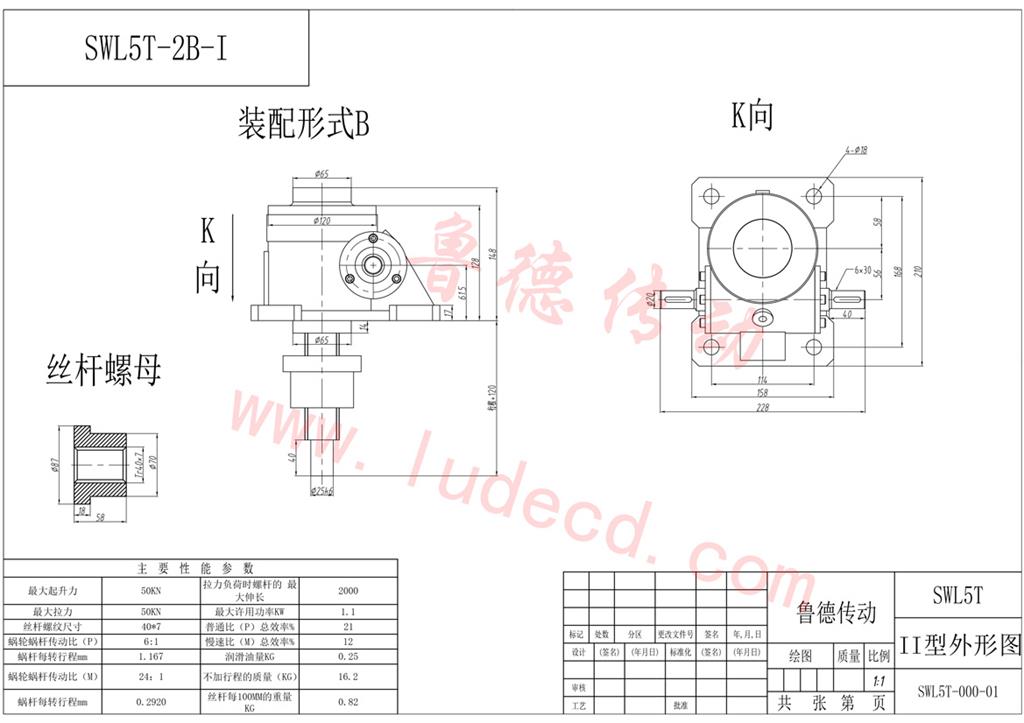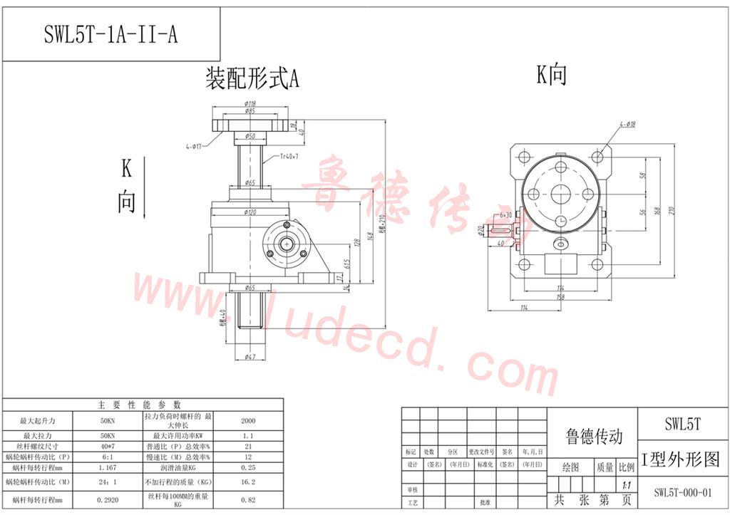絲(sī)杆升降機-SWL5蝸輪絲杆升降機圖紙-魯(lǔ)德傳動