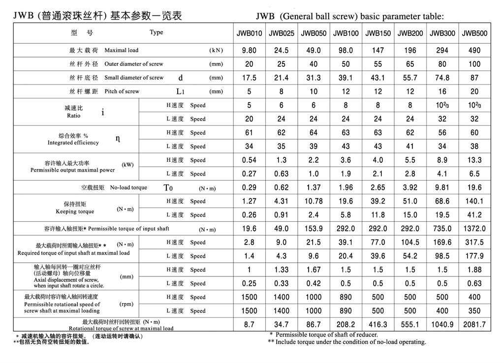 單台升降機的負荷時(shí)間率(%ED) 以30分為單位計算,JWM(梯形絲杆類型)的負(fù)荷時間率不得_過(guò)20%ED,JWB(普(pǔ)通滾珠絲杆)的負荷時間率不得_過30%ED,