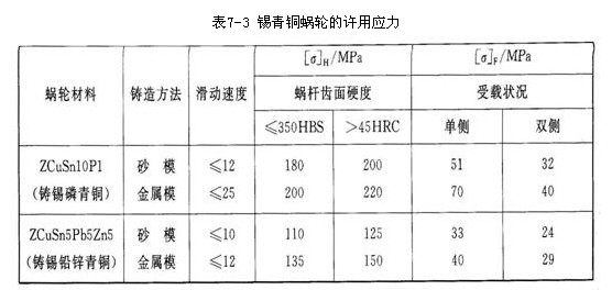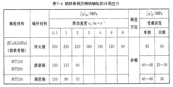 1、蝸輪材料及許用應力