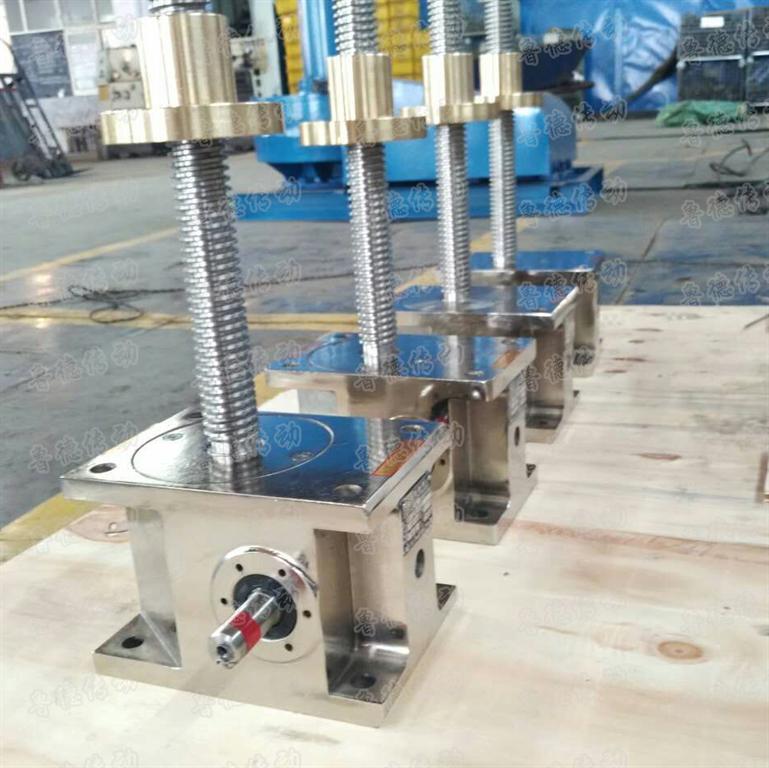 絲杆(gǎn)升降機的安(ān)裝需要有足夠的空間能(néng)夠上(shàng)下、左右自由活動,對於一些比較狹小的空間可以選擇螺母運(yùn)動結構型式(shì),升(shēng)降機安裝固定後由螺杆上(shàng)螺(luó)母作軸向運動來完成物體的上升、下降、翻轉等。升(shēng)降機工作環境(jìng)溫度應控製在-15°C到80°C,在零攝氏度以下工作時因受潤滑油粘性變化的影響使得(dé)整機效率下降,所以_選用充足的驅動源。螺旋升降機根據負載不同所(suǒ)需扭矩、轉速、功率等也不同,使用時要根據實際情(qíng)況進(jìn)行效驗,避免_負荷使用對升降機造成重大損傷。具體選型搭配可谘詢我公司技術人員。在室外或灰塵較(jiào)多(duō)的環境中使用可配備防塵罩等附件來保護絲杠。