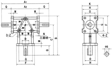 ARA 係列(liè)螺旋錐齒輪轉向箱/換向器 外形尺寸