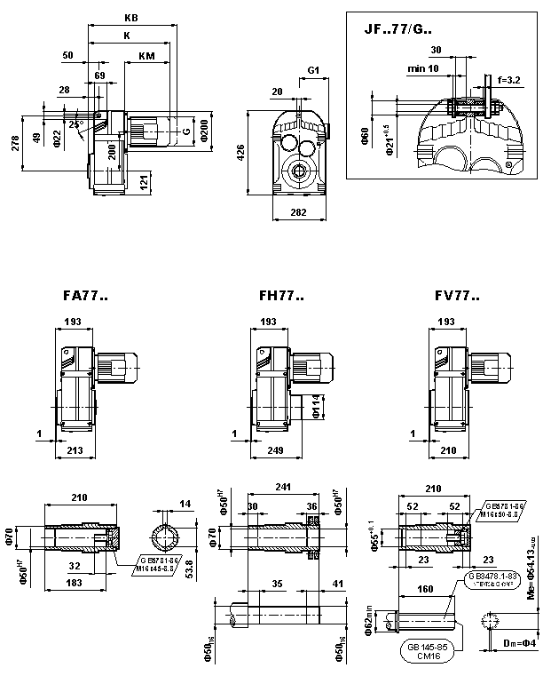 F係列減速機,F係列斜齒輪減速機,F係列傘輪減速機安裝尺寸F係列減(jiǎn)速電(diàn)機(jī);外形安(ān)裝尺寸(F77、FA77B、FH77B、FV77B、FF77、FAF77B、FHF77B、FVF77B、F..77/G、FA77、FH77、FV77、FAZ77、FHZ77、HVZ77)