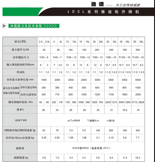 LDSL錐齒輪絲杆升降機技(jì)術參數