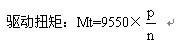 式中:Mt為驅動扭矩,P為(wéi)驅動功率(lǜ),n為轉速。