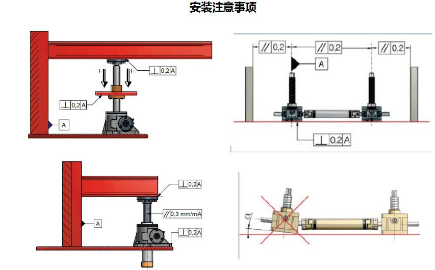 絲(sī)杆升(shēng)降機(jī)初次測試提升係(xì)統不要加載,初次測試沒問題可逐漸增加負載(zǎi),_要注意絲杆軸轉速與承載的(de)負荷進行搭配,對於升降機的容許_載荷、容許外加載荷、容許(xǔ)絲杆軸的旋轉速等項目徑(jìng)向校驗,如(rú)果_過產品的數據將會造成升(shēng)降機設備(bèi)整體的重大損傷。加(jiā)載的同時檢查_發熱(rè)點和齒(chǐ)輪箱的溫升,