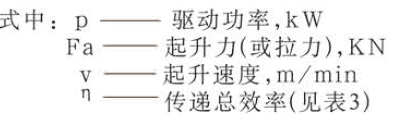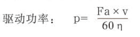 表5~表13是各型號螺杆傳動的許用起升(shēng)速度、扭矩和功率,其參數(shù)適合(hé)用於環境溫度為20°C、工作持續率為20%/h或30%/10min的條件下(xià);對粗線範圍(wéi)內的參數,使用時升降機會產生過(guò)熱,應(yīng)盡量避免選用,否則_采取(qǔ)有效措施。根據螺杆起升負荷及起升(shēng)速度,按(àn)照(zhào)下列公式計算升降機(jī)的驅動(dòng)功率,再查表5~表13,查出所需升降機型號。