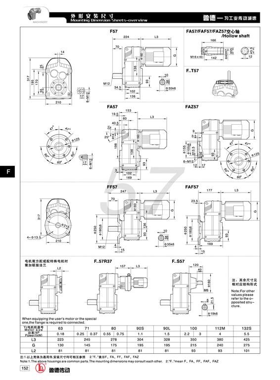 齒輪減速機安裝方式可分為空心軸(zhóu)、實心軸、法蘭式等,輸入功率從0.09KW-160KW,輸出扭矩可達20N.M-15000N.M,速比可從(配4極電機)4.3-273。如配6極或8極電機可獲得更低的輸出轉(zhuǎn)速;如需更低的輸出轉速可用采用雙級