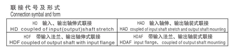 型號有HD09、HD11、HD14、HD17、HD21、HD24、HD28七種規格,選型範圍大,輸出軸型式多樣,可滿足多種場合的需要。