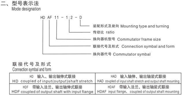 HD螺旋錐齒輪轉向器(qì)箱體形狀為六麵體(tǐ),能(néng)適應不同方位的安裝使用。共有七種規格(gé),選型範圍大(dà),輸出軸型式多樣,可滿足多種場合需要,可實現減速和增速兩種傳動方(fāng)式。當速比不為(wéi)1:1時,橫軸輸入、縱軸輸出為減速(sù),縱軸輸入、橫軸輸出為增速。換向器可正、反運轉,低速或高速傳動平穩,而且(qiě)噪音低,承受力大。