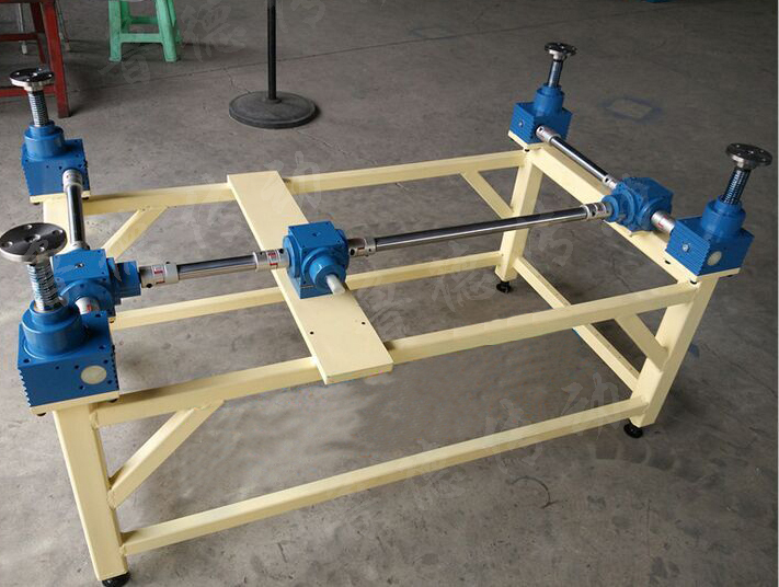 蝸輪絲杆(gǎn)升降機作為一種基(jī)礎起重部件運用範圍非常廣泛,可以單台頂升或下壓使用,也可與轉向箱或減(jiǎn)速機組合使用。如:兩台組合直線型(xíng)運動或與轉(zhuǎn)向箱組合成(chéng)T型(xíng)運(yùn)動。也可以四台或八台聯動使用,組合成能(néng)同時升降、同一方向旋轉的工作平台,且有多做組合型式可以選(xuǎn),方便實用(yòng)。