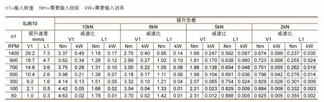 的提升能力為2KN~10KN,額定動載(zǎi)11KN,絲杆直徑20,蝸輪蝸杆減速(sù)比V1=1:4、L1=1:16,蝸杆輸入1轉絲杆行程(chéng)為V1=1.25mm、L1=0.31mm,_輸(shū)入功率為V1=0.57KW、L1=0.27KW,滿載啟(qǐ)動扭矩V1=4.8Nm、L1=1.8Nm,啟動效率V1=41、L1=1.8,1500rpm時的運轉效率V1=59、L1=42,箱(xiāng)體重量為6kg。