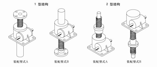 轉配型式:1型結構型式分為A型(xíng):螺杆工作端在上;
