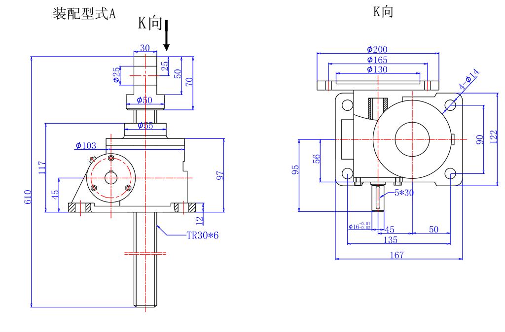 蝸輪絲杆升降機CAD外形圖SWL2.5M-1A-IV-400-F-17c起草官网傳動